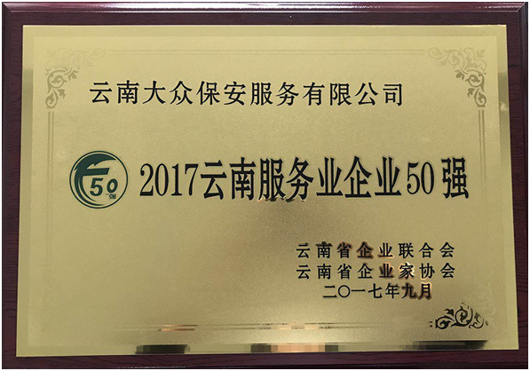 云南大眾保安服務(wù)有限公司再次榮獲“云南服務(wù)業(yè)企業(yè)5...
